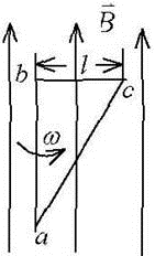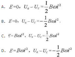 如图所示,直角三角形金属框架abc放在均匀磁场中,磁场说明:HWOCRTEMP_ROC80平行于ab边,bc的长度为l。当金属框架绕ab边以匀角速度ω转动时,abc回路中的感应电动势E和a、c两点间的电势差Ua-Uc为( )。