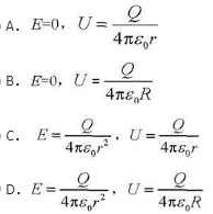 如图所示,半径为R的均匀带电球面,总电荷为Q,设无穷远处的电势为零,则球内距离球心为r的P点处的电场强度的大小和电势为( )。