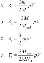 下列各式中哪一式表示气体分子的平均平动动能?(式中M为气体的质量,m为气体分子质量,N为气体分子总数目,n为气体分子数密度,NA为阿伏加得罗常量)( )。