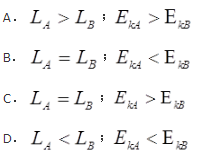 人造卫星绕地球运动,轨道为椭圆,轨道近地点和远地点分别为A和B。用L和Ek分别表示卫星对地心的角动量和动能瞬时值,则( )。
