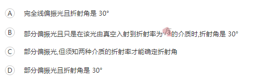 自然光以60°的入射角照射到某两介质交界面时,反射光为完全线偏振光,则知折射光是()