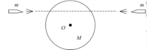 一圆盘正绕垂直于盘面的水平光滑固定轴O转动,如图所示,射来两个质量相同、速度大小相同、,方向相反并在一条直线上的子弹,子弹射人圆盘并且留在盘内,则子弹射入后的瞬间,圆盘的角速度ω()