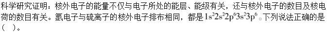 A.两粒子的1s能级上电子的能量相同
