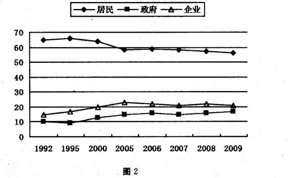 材料一:改革开放以来,在我国居民收入不断增加的同时,收入分配中的一些问题也逐步显出来。2009年,我国的最低工资是我国人均GDP的25%,世界平均为58%;我国最低工资是我国平均工资的21%,世界平均为50%。我国居民收入在国民收入初次分配、再分配中的比重分别如图1、图.:2所示。