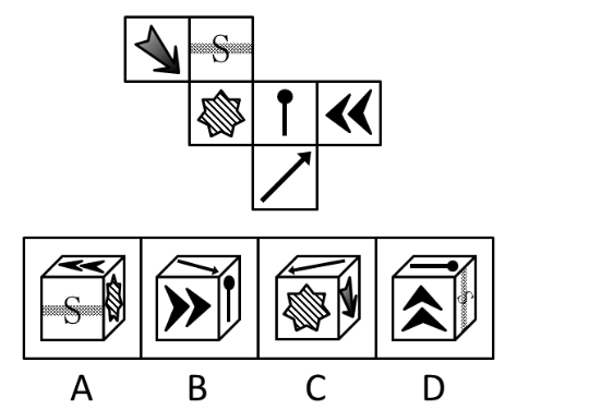下图左边给定的是纸盒的外表面,下列哪一项能由它折叠而成?()