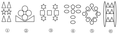 把下面的六个图形分为两类,使每一类图形都有各自的共同特征或规律,分类正确的一项是()。