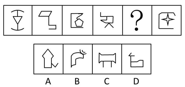 从所给的四个选项中,选择最合适的一项填入问号处,使之呈现一定的规律性: