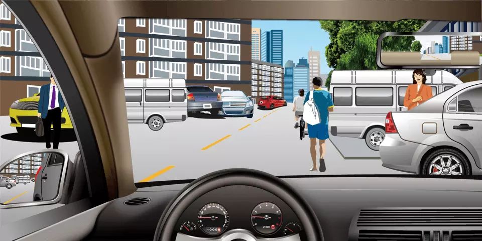 如图所示,在居民区内为了预防突发情况出现,驾驶人应如何安全驾驶?