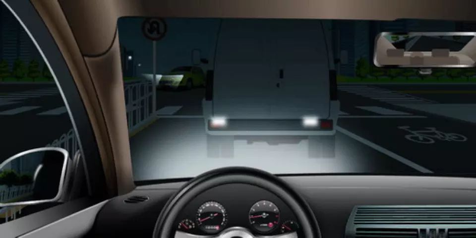 如图所示,驾驶机动车跟车行驶遇到前车遮挡路口交通信号灯时,以下做法正确的是什么?