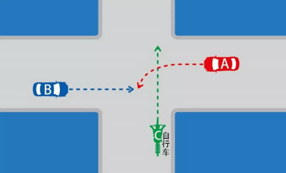 如图所示,图中车辆如何通行符合安全文明行车要求?