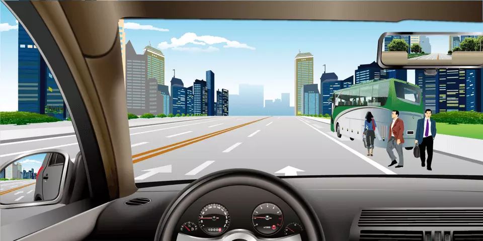 如图所示,驾驶机动车在公交车站遇到这种情况要迅速向左变更车道绕行。