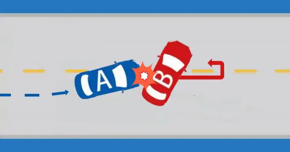 如图所示,造成事故的原因是B车掉头行驶,B车负全部责任。