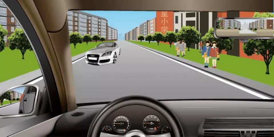 如图所示,驾驶机动车遇到这种情况时,应该考虑到路边儿童可能会因为打闹而突然冲入路内。