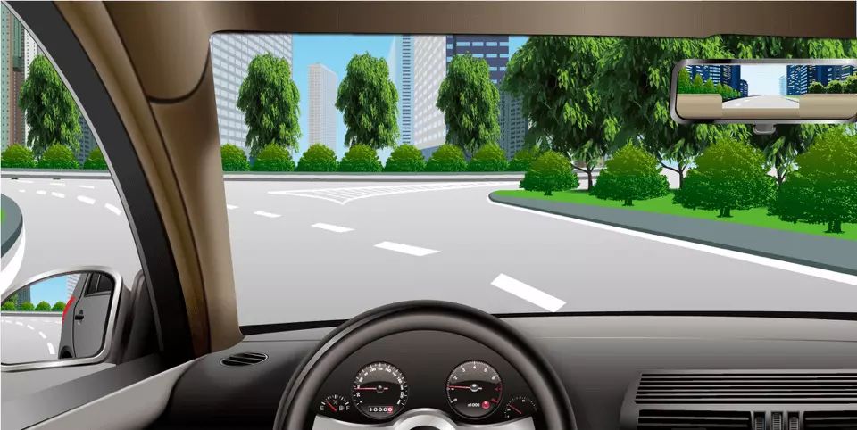 如图所示,驾驶机动车驶出环岛时,应先驶入最右侧车道不用开启转向灯驶离即可。