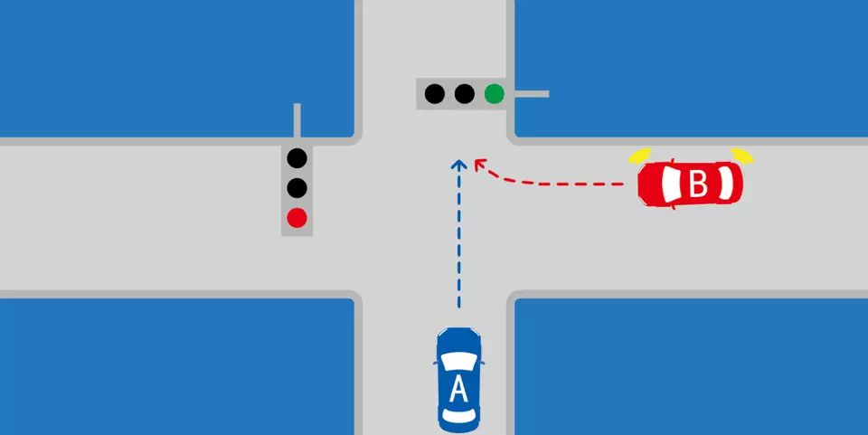 如图所示,这种情况下,B车优先通行。