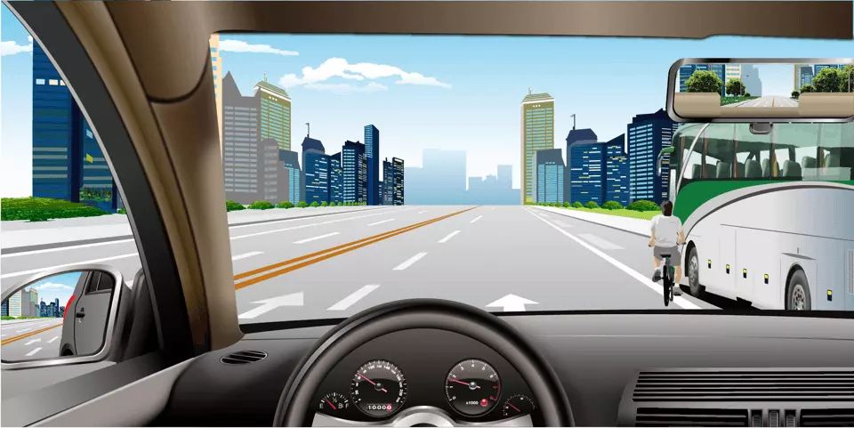 如图所示,在这种情况下要注意右侧的非机动车。