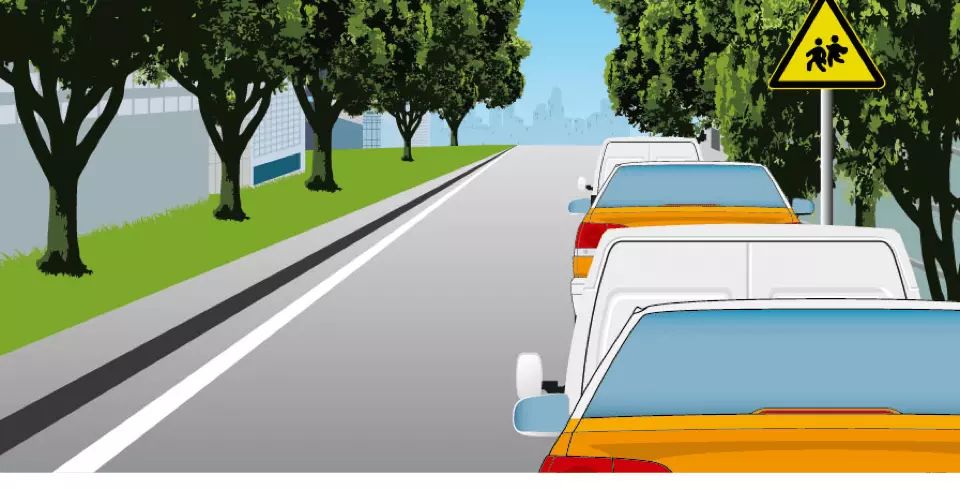 <p>如图所示,驾驶机动车看到路边有这种标志时,表示前方接近学校区域,因此要提前减速注意观察。<br><img style="w