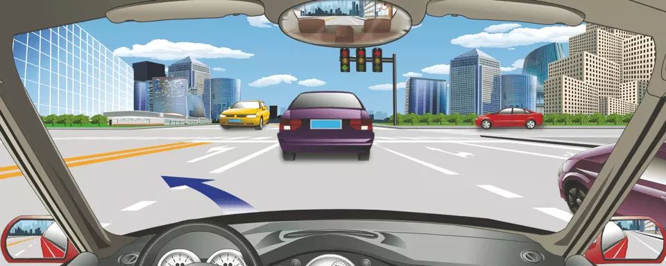 驾驶机动车在这个路口左转弯要提前按导向箭头指示向左变更车道。