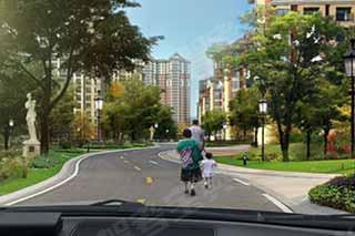 在社区道路行车,遇到前方行人占道行走时(如图所示),教练员应提示学员___。