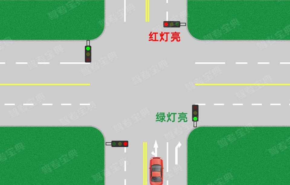 如图所示,准备右转弯的车辆错误地选择了直行或左转弯车道行驶时,驾驶员应___。