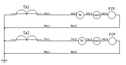 2. 有一高压电能计量柜,电能计量装置的电流回路为二相四线接线,电流回路的负载有失压计时仪、有功电能表、无功电能表,请画出该电