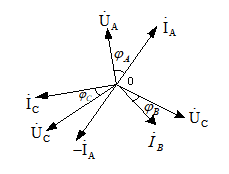 8. 运行中的三相四线有功电能表,仅A相电流接反,其它均正确,画出此情况时的相量图。